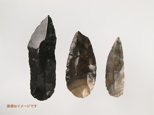 博物館所蔵の実物の石器をさわって、形状や質感を確かめたり、石器の割れ方などを観察したりしてみましょう。