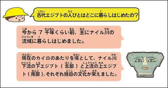 ●「子ども解説パネル」の展示子どもミュージアム展キャラクターの「おりえちゃん」「えん太くんが、各セクションの展示内容をかみ砕いてご紹介。世界史を学んでいない小中学生や古代オリエントの歴史文化をこれから学びたいという大人の方々に向けて、親しみやすくわかりやすい解説パネルを設置します。