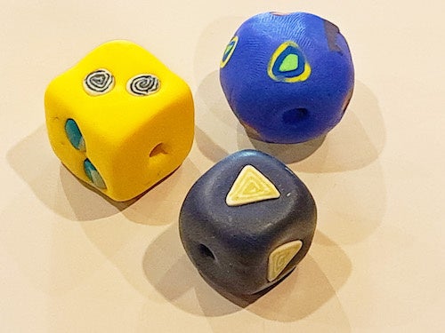 焼いて固まるオーブン粘土を使ってとんぼ玉制作の過程を体験できます。粘土に模様のパーツを埋め込むだけで、どなたでも簡単に自分だけのデザインのトンボ玉を制作でき、完成品はお持ち帰りいただけます。