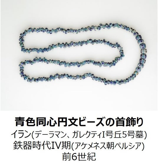 青色同心円文ビーズの首飾り(イラン(デーラマン、ガレクティI号丘5号墓)鉄器時代IV期(アケメネス朝ペルシア) 前6世紀)