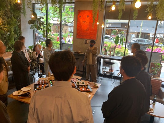セミナーに先立ち、13:00より限定ランチ会が開かれました。会場は緑に囲まれた落ち着いた雰囲気であり、15名の出席者が立食ビュッフェ形式で食事を楽しみながら交流を深めました。投資家レイ氏も出席し出席者からの質問に気さくに答えるなど、有意義な情報交換の場となりました。