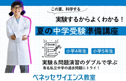個別指導塾のパイオニアとして日本全国に272拠点(2025年6月16日時点)を展開するベネッセグループの株式会社東京個別指導学院(本社:東京都新宿区、代表取締役社長:松尾 茂樹)は、運営するベネッセサイエンス教室において、小学4年・5年を対象に「夏の中学受験準備講座」を開講します。講座では、中学入試問題に頻出するテーマを科学実験を通じて考え、理解します。“考えるヒントを体験”し、“思考力を試す過去問題を体験をもとに解くことができる”講座です。1回1テーマ完結型で、会員でない方もお申込みいただくことができます。