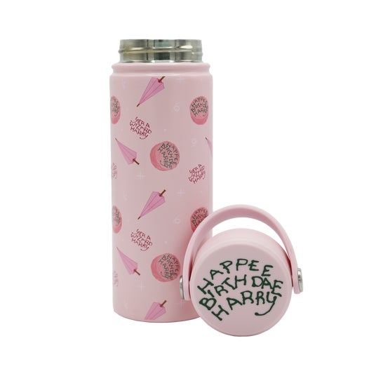 ハグリッドの象徴的なバースデーケーキにインスパイアされたステンレスボトル。ハグリッドの不格好なバースデーケーキ、愛らしいアイシングフォントで書かれた「YER A WIZARD, HARRY(お前は魔法使いだ)」の文字、ハグリッドのピンクの傘、そしてダドリーの有名な巻き尻尾まで、細部にまでこだわったデザインはファンの心をくすぐる商品です。