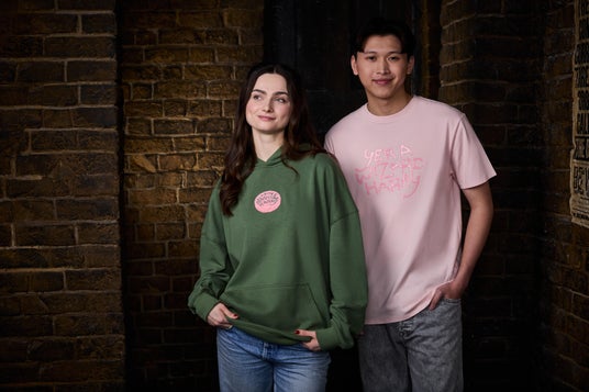 映画『ハリー・ポッターと賢者の石』で、ハグリッドがハリーに初めてバースデーケーキでサプライズする忘れられないシーンにインスパイアされたベビーピンクのTシャツです。フロントには、ケーキのアイシングフォントで「YER A WIZARD, HARRY(お前魔法使いだ)」の文字がプリントされており、あの心温まるシーンが蘇ってくる1枚です。