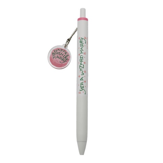 ケーキのチャームがアクセントのボールペンは、日本限定発売。ボディにもハグリッドが作ったバースデーケーキとハグリッドの名台詞「YER A WIZARD, HARRY(お前は魔法使いだ)」がプリントされています。インクもケーキと同じピンク色の本商品は贈り物にもおすすめです。