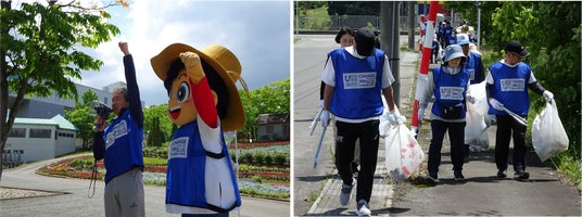 あきた海ごみゼロプロジェクト実行委員会は、6月5日(木)に横手市、秋田ふるさと村を起点に周辺のおよそ3kmの周辺道路にて、ウォーキングで健康づくりをしながらごみを拾う、ウォーキングでごみ拾いを実施しました。誰もが参加しやすくチャレンジできるよう、よこてノルディックウォーキングクラブの協力で適切なウォーミングアップを三平くんと行った後、参加者はウォーキングを行いながら清掃活動に取り組みました。このイベントは、日本財団が推進する海洋ごみ対策プロジェクト「海と日本プロジェクト・CHANGE FOR THE BLUE」の一環で開催するものです。