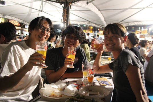 ビールなどのお酒を飲むにはオリジナルグラス(小または中)を購入するか、各ブルワリーで用意するグラス(大)でお楽しみいただけます(グラスデポジット1000円)。少しずつ飲み比べしたい方には小グラス700円と試飲券(4枚1000円)がおすすめ。この試飲券には着物割や学割(それぞれ200円!※学割でも20歳未満は購入できません)があるので、地ビール初心者にはぴったりです。