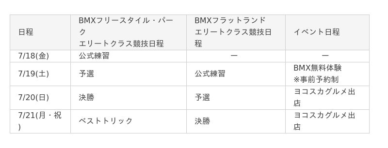 7月18日(金)~21日(月・祝) にヴェルニー公園で開催を予定しているBMXフリースタイル「マイナビJapanCup Yokosuka 2025」 (主催:JFBF、共催:横須賀市、シリーズ第2戦)のエリートクラス競技日程とイベント日程を次のとおり決定しましたのでお知らせいたします。