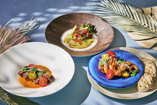 ロイヤルハワイアンのレストラン&バーMai Tai Barの名物メニュー「リブアイ」や「サウスショア シュリンプ」、メインダイニングAzureのハワイの定番「アヒ」をアレンジするメニューなどランチコースのメインディッシュでお選びいただけます。