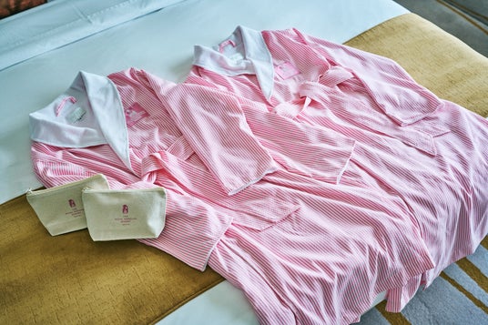 ロイヤルハワイアンのピンク色のバスローブを着てビーチフロントでゆったりと過ごすような時間を過ごせるステイプラン。朝食は、現地で人気のサーモンをマリネしたグラバロックス ベーグルとフルーツたっぷりのアサイーボウルを客室でお楽しみいただけます。ロイヤルハワイアンのロゴ入りオリジナルポーチは、旅の思い出にお持ち帰りいただけます。