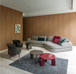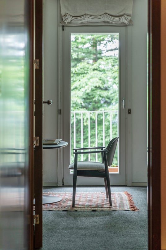 アルフレックス取り扱いのイタリアの総合家具ブランドMolteni&CのVMDチームによる完全監修のもと、経年変化により味わいを増した建具や壁仕上げを活かしながら、インテリアはイタリアンモダンのスタイルにアップデート。ジオ・ポンティの復刻作品のアームチェアをはじめ、“Heritage”をテーマに、名だたるデザイナーが手掛けたMolteni&Cの家具を多く採用。1Fは社交スペース、2Fはプライベート空間になっています。2Fには景色を眺めながらくつろげるラウンジもあります。