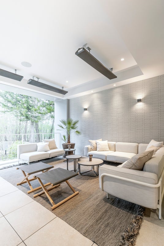 内と外をつなぐアウトドアリビングには屋外用ヒーターを完備し、季節ごとの過ごし方をご提案。階段からガーデンへと降りることが可能。