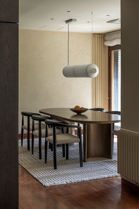 20世紀の巨匠ジオ・ポンティをはじめとする著名デザイナーが手掛けたアイコニックな家具が配され、クラシカルな建築と共鳴します。