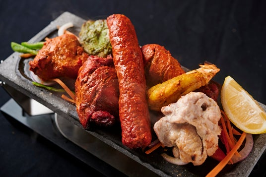 骨付きタンドリーチキン・チキンティッカ・グリーンティッカ・マライティッカ・シークカバブ・タンドリーシュリンプがMIXされた最強タンドール料理です♪