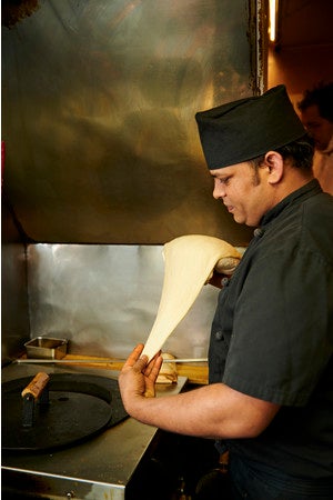 ※1パラーターとはチャパティの生地をのばし、ギーを塗り、折り畳むことを繰り返してギーを層状に練り込み、薄くのばして焼いたもの。