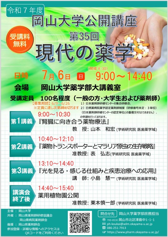 https://www.pharm.okayama-u.ac.jp/master/wp-content/uploads/2025/05/20250529_%E5%B2%A1%E5%B1%B1%E5%A4%A7%E5%AD%A6%E8%96%AC%E5%AD%A6%E9%83%A8_R7%E5%85%AC%E9%96%8B%E8%AC%9B%E5%BA%A7%E3%83%9D%E3%82%B9%E3%82%BF%E3%83%BC%EF%BC%88QR-1%EF%BC%89.pdf