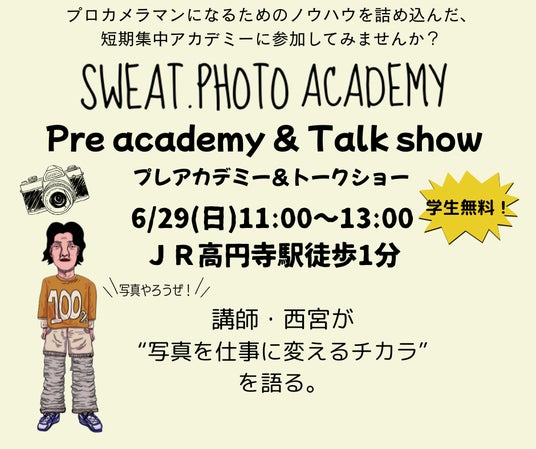 “写真を仕事にしたい人”のための短期集中・超実践型スクール「SWEAT. PHOTO ACADEMY」/講師・西宮大策によるプレアカデミー&トークショーを開催