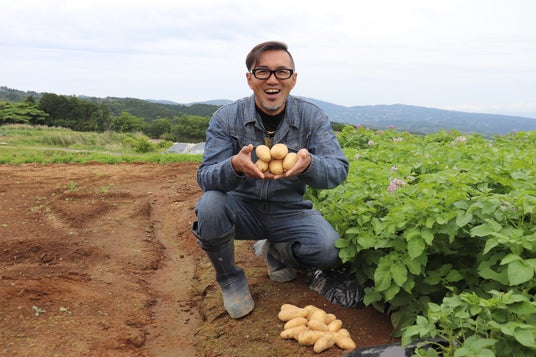 「三島馬鈴薯」は、品種はメークイン種です。収穫を一つずつ手掘りで行い、その後、風乾貯蔵して一定の基準で機械選果しています。肌目のきれいなジャガイモで市場からも高く評価され、同時期の他産地のメークインとくらべて評価も高いことから、2016年に静岡県で初めてGIを取得しました。