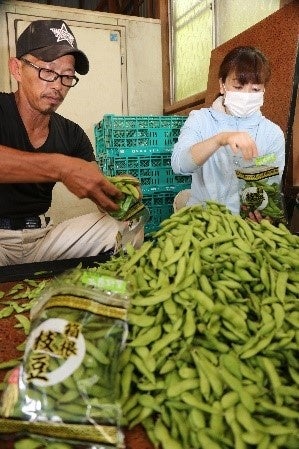箱根枝豆生産者から一言「序盤は夜温が低く遅れ気味ではあったが、生産も追いついてきて品質も良いものができている。日ごろから出荷調整には力を入れている。しっかり実の詰まった枝豆を届けていきたい」と話します。