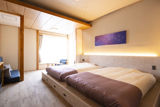 より快適なご滞在を提供するため、天然木を活かした家具の一新、各部屋のコンセプト、高反発タイプの新マットレスを採用。四季折々の山景と調和する、静謐で芯のある空間へと進化いたしました。