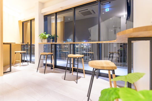 倉敷駅直結という最適なアクセスの良さを実現、仕事帰りや外出ついでに手ぶらで通える手ぶらセットも用意しています。待合スペースは電源完備の24時間コワーキングスペースとして利用することが可能です。