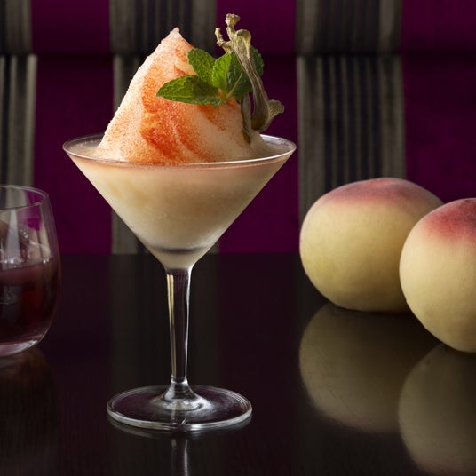 フレッシュな白桃を使った夏季限定のフローズンカクテル。まるで濃厚な桃のシャーベットを味わっているかのような口当たりです。飾りで添えたドライジンジャーのガーニッシュが、ジンのボタニカルの一つであるジンジャー香をより引き立て、桃の甘さの中に心地よい爽快感をもたらします。上品なフォルムのカクテルグラスに注がれ、仕上げにあしらったラズベリーパウダーが、カクテルを一層〈エレガント〉で華やかな印象に。甘いカクテルがお好きな方や、デザートカクテルとしてもお楽しみいただけます。