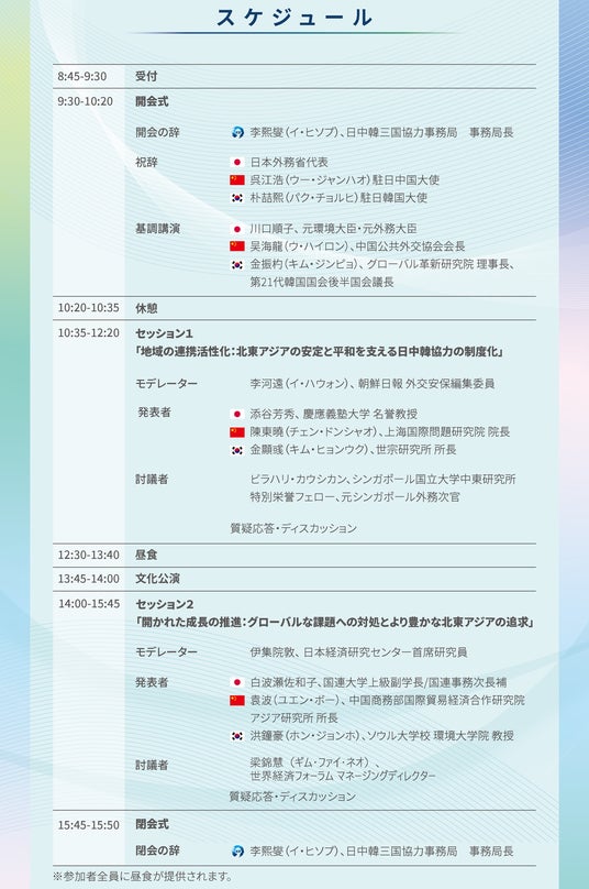 テーマ:「地域の連携活性化:北東アジアの安定と平和を支える日中韓協力の制度化」