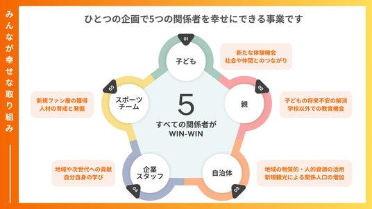 また、スポーツは多くの子どもたちにとって馴染みがあるトピックスです。スポーツをテーマに営業、広報、CSR、総務経理、施設管理などの仕事や役割があることや、スポーツに関連したさまざま事業や企業があることを学ぶことが出来きます。子どもたちが考えたアイデアを実際のスタジアムで実行する機会まで企画しており、自分の考えが現実にファンを喜ばせる体験は、特別な経験になります。