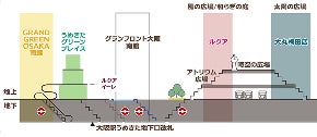 大阪ステーションシティ(ノースゲートビルディング、サウスゲートビルディング)、うめきたグリーンプレイス、グランフロント大阪、グラングリーン大阪