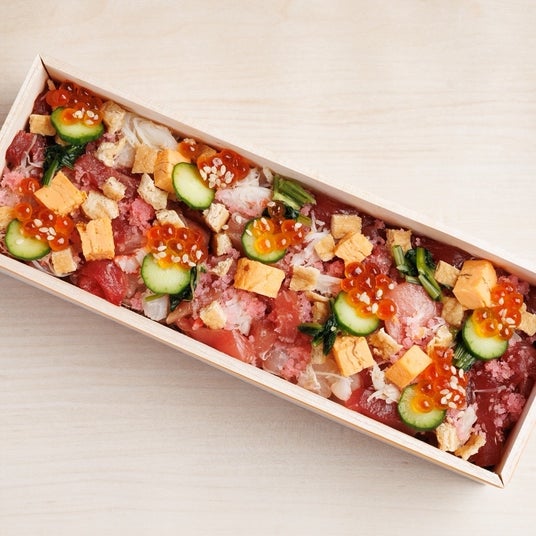ばらちらし特製の赤酢を使用し、米は大きめの粒と甘みが特徴なあいちのかおりを使用。お米は妥協を一切しない最高級な米。ネタには本鮪、本鮪の中落ちをふんだんに使いました。シャリには、椎茸、干瓢を混ぜて、ネタとの甘味、うま味を相乗させています。