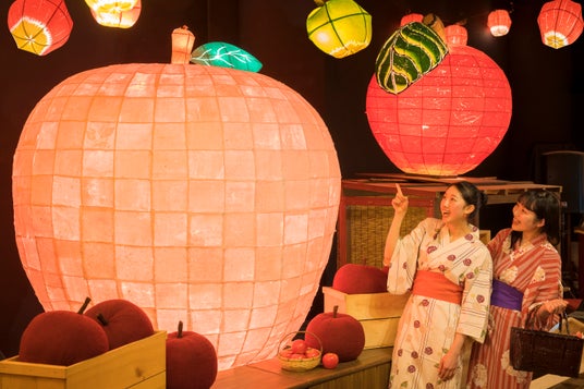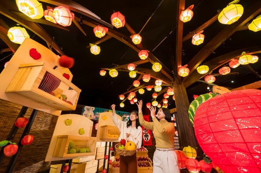 期間中、りんごの灯篭と写真が撮れるフォトスポットが登場します。高さ約2mの「巨大りんご灯篭」は、りんごの残渣(ざんさ)(*3)で作られる紙を使用した灯篭です。じゃわめぐ広場と西館をつなぐ通路「りんご灯篭回廊」には約300個のりんごの灯篭が並び、りんごに囲まれた写真を撮影できます。家族や友人と一緒に、記念写真を撮影することができるおすすめのスポットです。