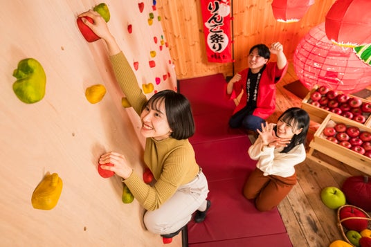 袋はぎ、収穫、選別、出荷まで、りんごの一連の収穫工程から着想を得た4つの競技で体を動かす「りんご収穫ラリー」が新登場します。りんごの色づきを綺麗にさせる工程「袋はぎ」をイメージした「ボルダりんご」、りんごの的を狙い収穫をする「りんご射的」、りんごのクラブで選別をする「りんゴルフ」、りんごクッションを木箱に投げ入れる「りんご出荷スロー」の4競技です。各競技ごとの点数を競い合って楽しみ、合計点によってりんごジュースやオリジナルステッカーなどの景品がもらえます。