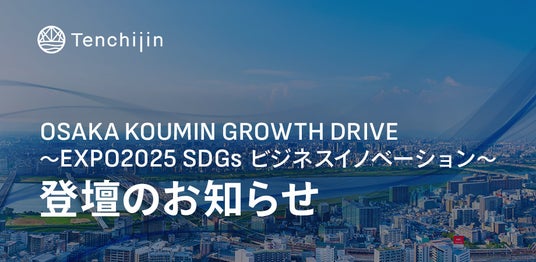 JAXA認定の宇宙ベンチャー 株式会社天地人(東京都中央区 代表取締役 櫻庭康人)は、2025年6月26日(木)、27日(金)に大阪市で開催される「OSAKA KOUMIN GROWTH DRIVE~EXPO2025 SDGs ビジネスイノベーション~」に登壇することをお知らせします。