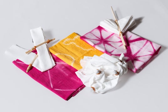 布地の一部を糸でくくる、縫い締める、あるいは板で挟むなどの方法で、その部分に染料が入らないようにして文様を染め出す染色技法です。「浸染」の一種で、染色の原点となる技法でもあります。染料や助剤を調合し、白生地を浸して着色します。体験では染色したハンカチを袋でお持ち帰りいただき、ご滞在中のお部屋やご自宅で干して完成となります。