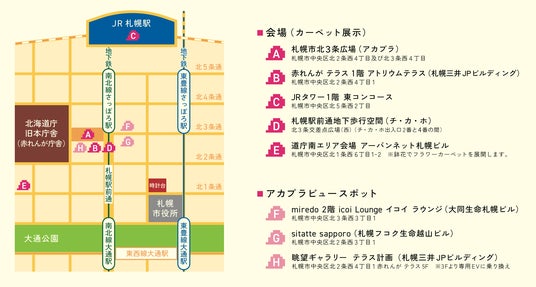 歴代カーペットの写真を展示するギャラリーや、札幌・北海道の美しい花景観の魅力を発信するパンフレットコーナーを設けます。
