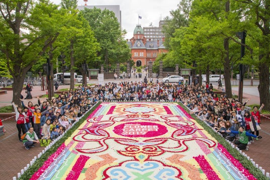 「フラワーカーペット」は、花びらや自然素材を用いて1つの大きな絵を作り上げるイベントで、ベルギーの首都ブリュッセルでは、2年に1度大きな祭典も開かれています。札幌では、札幌市北3条広場(アカプラ)のオープニング記念として2014年に1回目が開催され、今年で11回目を迎えます。