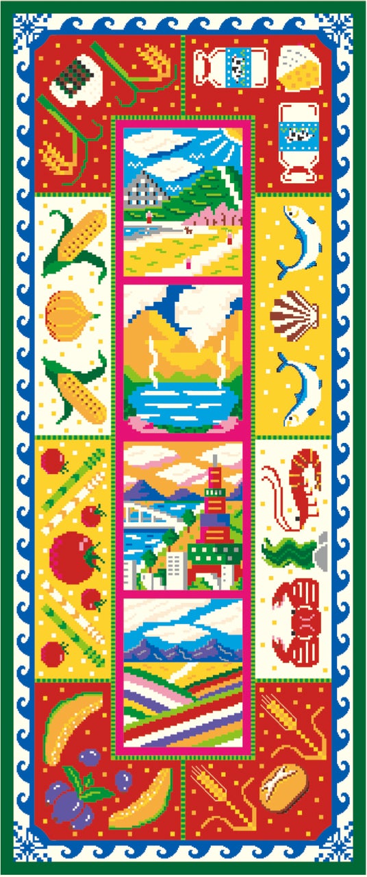野菜や果物、お米や小麦、乳製品や海産物。恵まれた自然環境と人が育む豊かな「食」をフレームに、自然と産業、人と文化が根付いている「観光地」を描き、フラワーカーペットをデザインしました。最も大切にしている考えは「観光まちづくり」という視点です。来訪者を呼ぶための観光ではなく、ここに住む私たち自身が「住んでよし」のマチをつくること。まさに、私たち自身が取り組まなくてはいけません。今回は「モエレ沼公園」と「さっぽろテレビ塔」の他、私たちがデザインで携わるふたつのまち、農業が織りなす美しい丘のまち「美瑛町」、観光とまちづくりの最前線「弟子屈町・川湯温泉」をモチーフにしています。豊かな自然と健やかな暮らしを両立させる、これからの北海道らしい食と観光の在り方を考えてみてはいかがでしょうか。