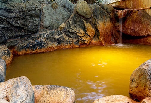 特にていれぎの湯名物「露天金泉湯」は成分が豊富なため、空気に触れると金色に輝く黄金湯に。