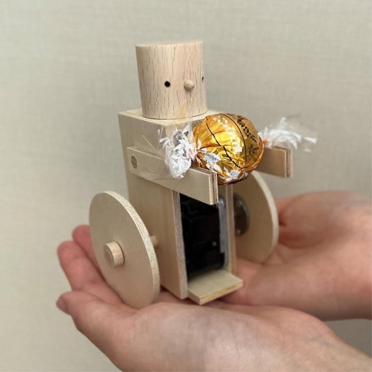代表的な江戸からくりの一つである、「茶運び人形」を作るワークショップです。チョコや飴玉を載せると動き出し、取るとピタリと止まります。手のひらサイズの、オルゴールつきからくり人形です。