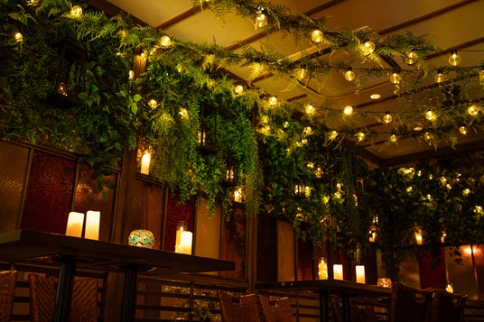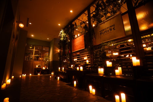 キャンドルとランタンの灯りが店内をやさしく照らし出すこの空間では、まるでラプンツェルの“灯籠の夜”のような世界が広がる。