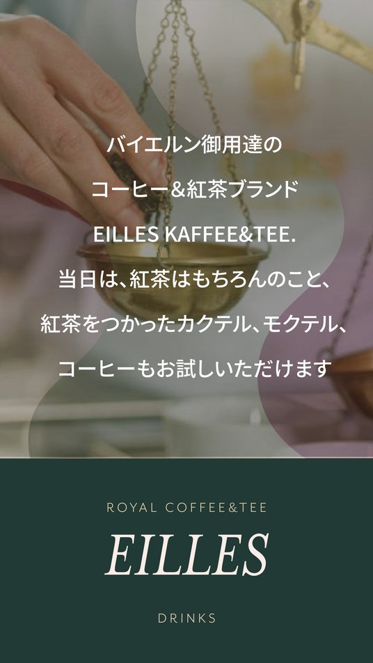 バイエルン御用達のコーヒー&紅茶ブランドEILLES KAFFEE&TEE。当日は、硬水で入れる紅茶はもちろんのこと、紅茶をつかったカクテル、モクテル、コーヒーもご提供します。