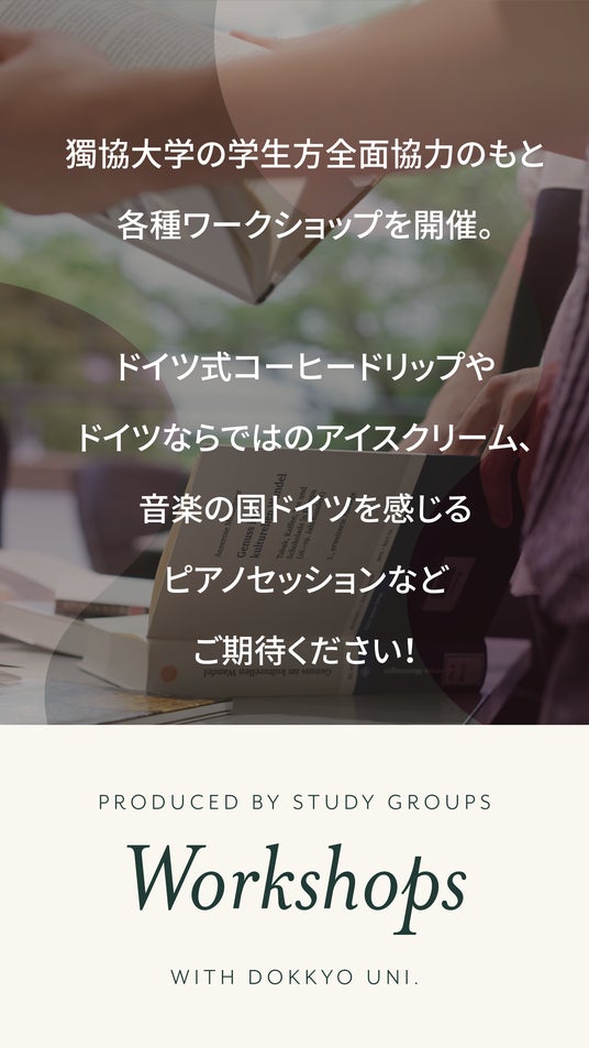 獨協大学の学生たちによる各種ワークショップを開催。ドイツ式コーヒードリップやドイツならではのアイスクリーム、音楽の国ドイツを感じるピアノセッションなど。