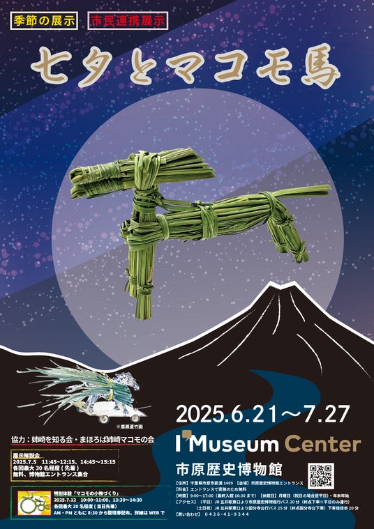 今回の展示では、七夕に関するパネルや廣瀬盧竹の原画のほか、市内に残る伝統的なマコモ馬づくりを継承する「姉崎を知る会」と連携して、新たに製作したマコモ馬の展示を行います。