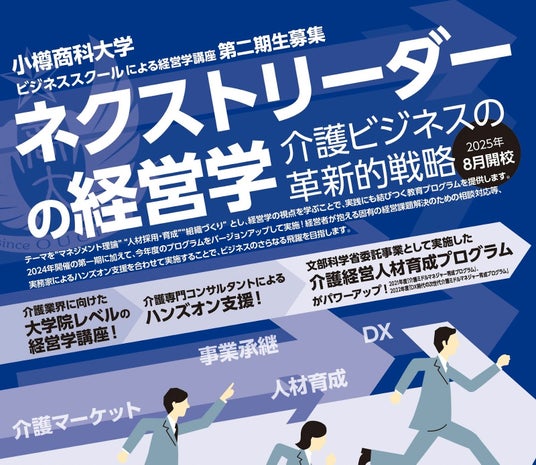 国立大学法人 北海道国立大学機構 小樽商科大学(所在地:北海道小樽市、学長:穴沢 眞)は2025年8月28日(木)、経営系専門職大学院の小樽商科大学ビジネススクールにおいて特別経営学講座「ネクストリーダーの経営学 ~介護ビジネスの革新的戦略~」第2回を開講することをお知らせいたします。