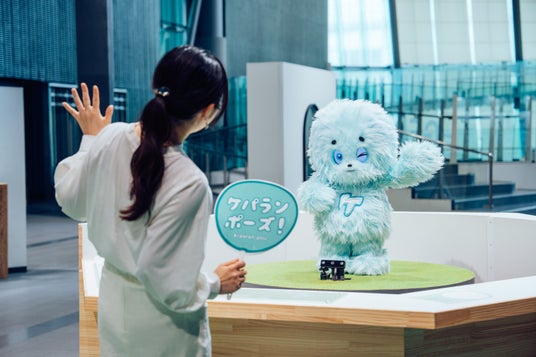 常設展示「ハロー! ロボット」は、コミュニケーションロボットなどとのふれあいや、最新のロボット研究の紹介を通して多様なロボット技術を知り、その可能性を感じていただくことを目指して2023年11月に展示を開始しました。その中で、ロボットがより身近になる未来を体感し、人とロボットとの関係性を「自分ごと」として考えていただくきっかけとして、未来館オリジナルパートナーロボット「ケパラン」を展示しています。ケパランは、トヨタ自動車株式会社 未来創生センターが開発するマスコットロボットの技術を基盤に、キャラクターデザインや来館者とのコミュニケーションに関する動作などをオリジナルで開発しています。