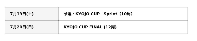 20日(日)に「KYOJO FINAL(12周)」と、土日2日間で2レースを観戦できます。