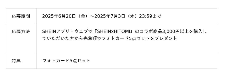 ◆【シーズンモデル就任記念】SHEIN JAPAN初!フォトカードキャンペーン概要