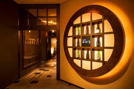 京都や神楽坂の町並みを彷彿とさせる趣深い空間。店内には伝統的な日本家屋の装飾を施した他、わくわくするような「路地」をテーマとして多彩なインテリアを配備するなど、様々な和の雰囲気を味わうことができ、さらには日本酒バー<天乃川>を併設しています。