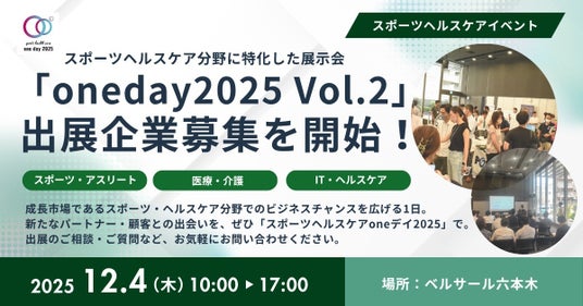 株式会社Keep up(本社:東京都港区、代表取締役:朝倉 新、以下「当社」)は、スポーツ・ヘルスケア分野に特化したB2Bマッチングイベント「スポーツヘルスケアoneデイ2025 Vol.2」を、2025年12月4日(木)にベルサール六本木にて開催いたします。