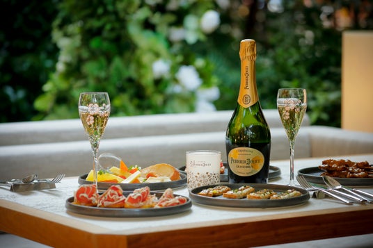 本プランでは、「ペリエ ジュエ グラン ブリュット」を含む90分のフリーフロープランに、シェフが手がけるカナッペ3種を添えてご提供。みずみずしい季節の恵みを感じさせる味わいと、エレガントな泡とのマリアージュが、午後のひとときを洗練されたひと幕へと導きます。
